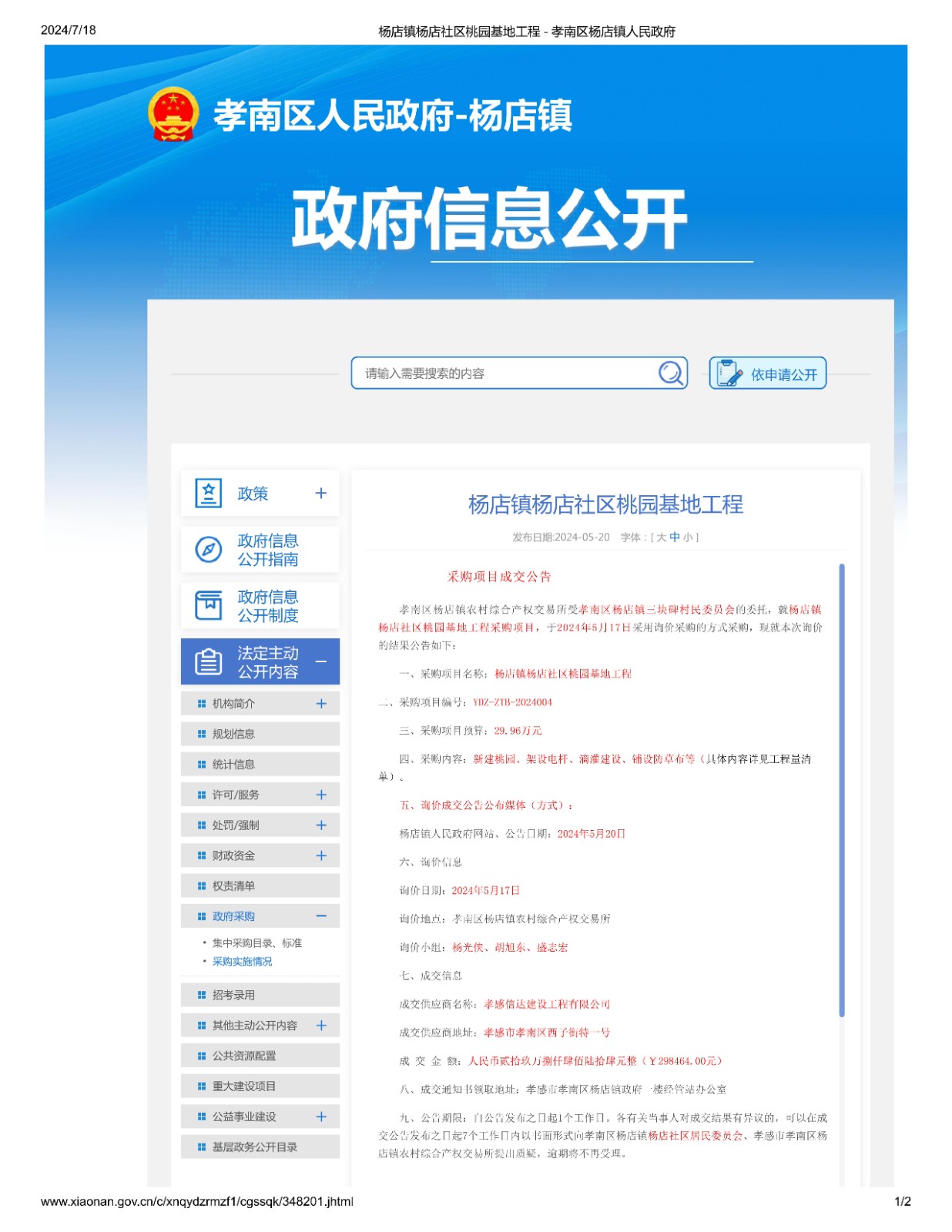 項(xiàng)目名稱:楊店鎮(zhèn)楊店社區(qū)桃園基地工程