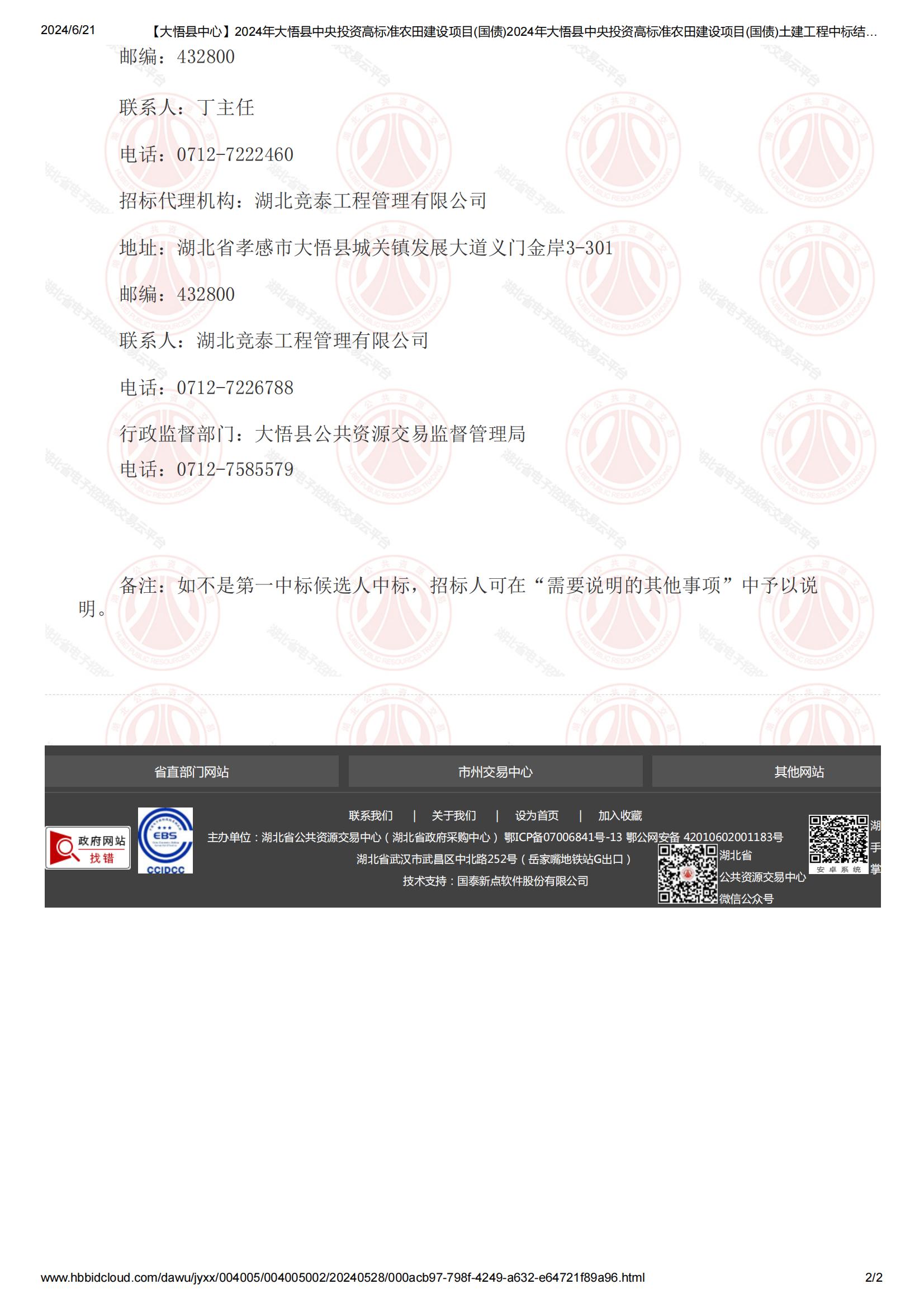 項目名稱:2024年大悟縣中央投資高標(biāo)準(zhǔn)農(nóng)田建設(shè)項目(國債)土建工程